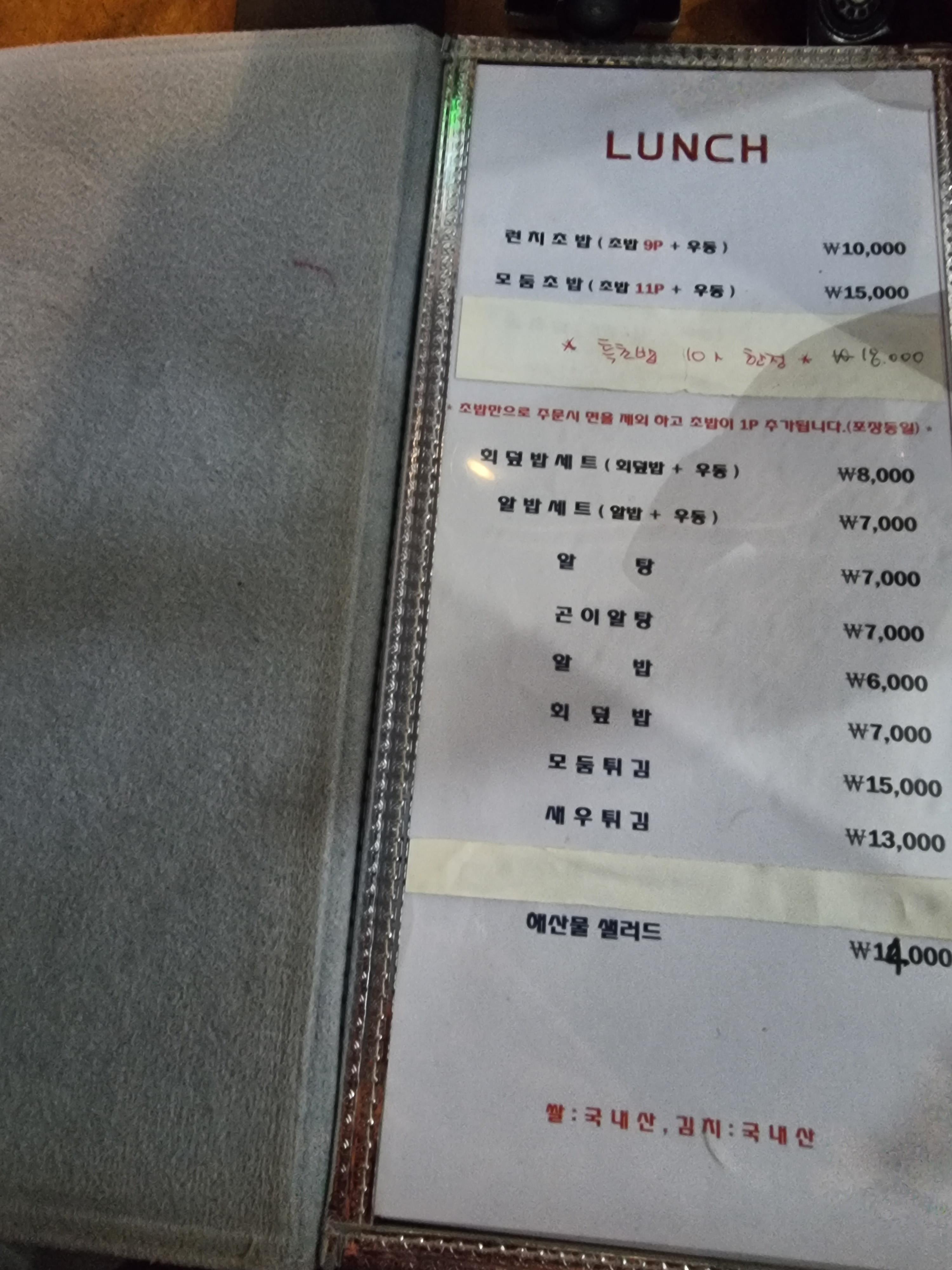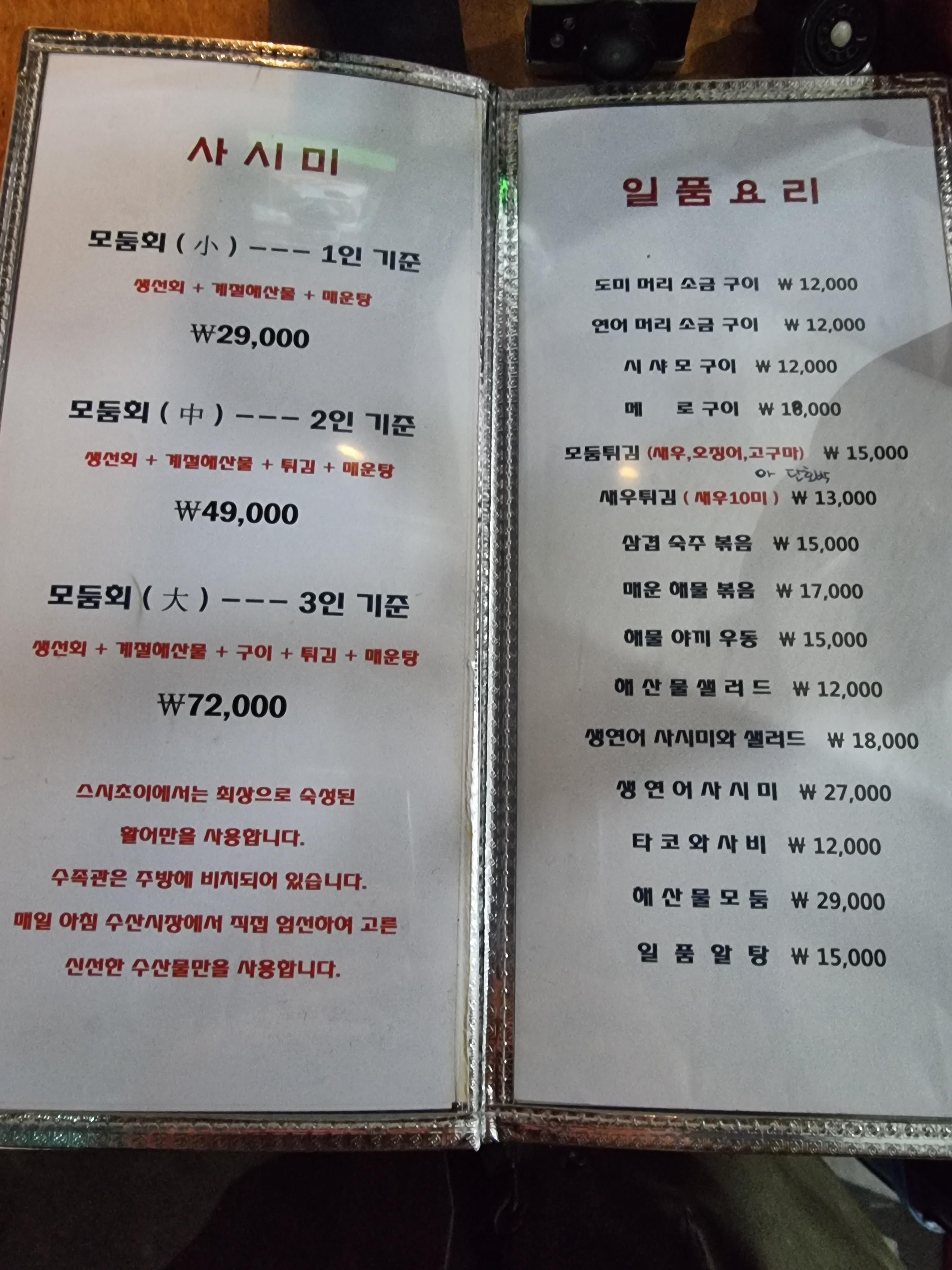 크게 런치와 디너, 사시미, 일품 요리 등으로 구성이 되어있는데요,