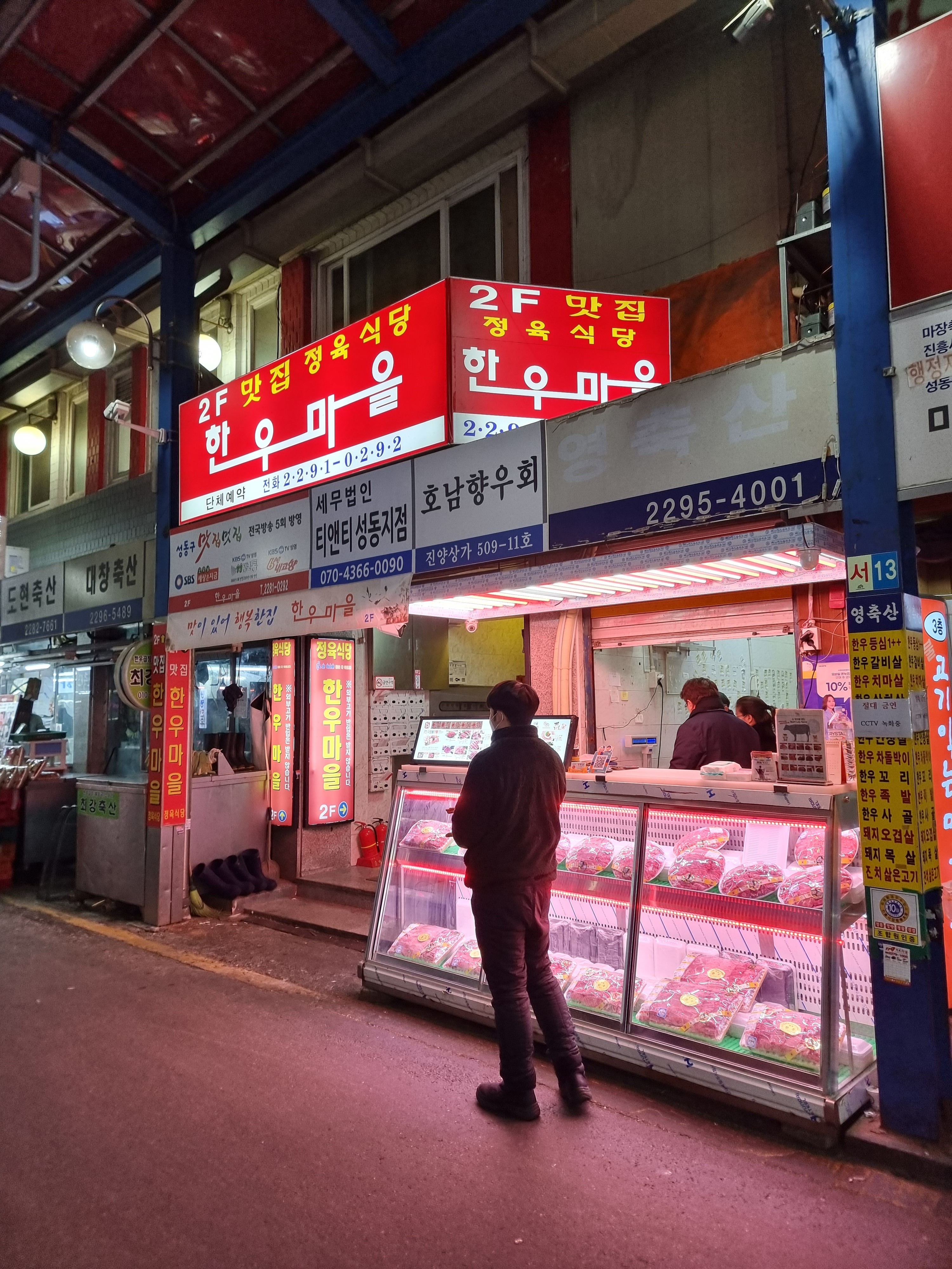 요런 거리를 볼 수 있는데요,지나가면서 원하는 부위를 전시해놓은 가게를 방문하시면 됩니다!마장동 전체의 소고기 품질과 맛은기본적으로 보장이 된다고 생각합니다.