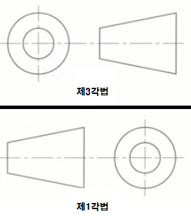 위의 그림처럼 어떤 투상방법을 사용했는지,