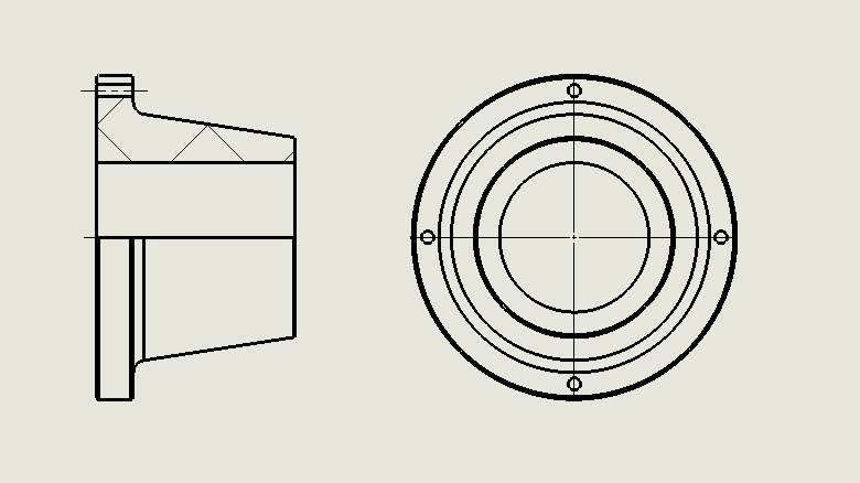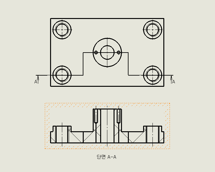 - 물체의 절반 (중심 면) 을 절단하여 작도
