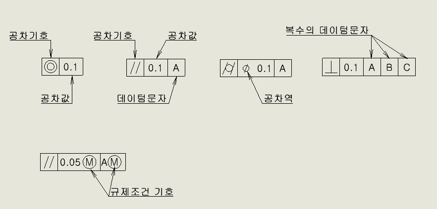 그 안에 기하공차의 종류에 대한 각각의 내용을 칸을 나누어 기입