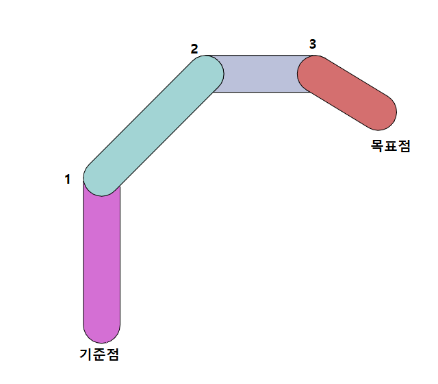 ☞ 순기구학(정기구학) : 기준점을 시작으로 순차적으로 위치를 결정하는 방식